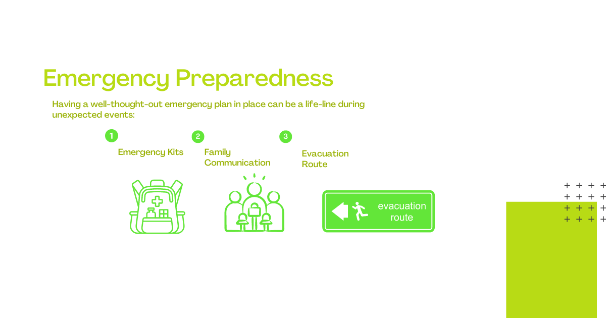 - Family Communication: Establish a family communication plan to ensure everyone knows where to gather and how to contact each other in case of separation.