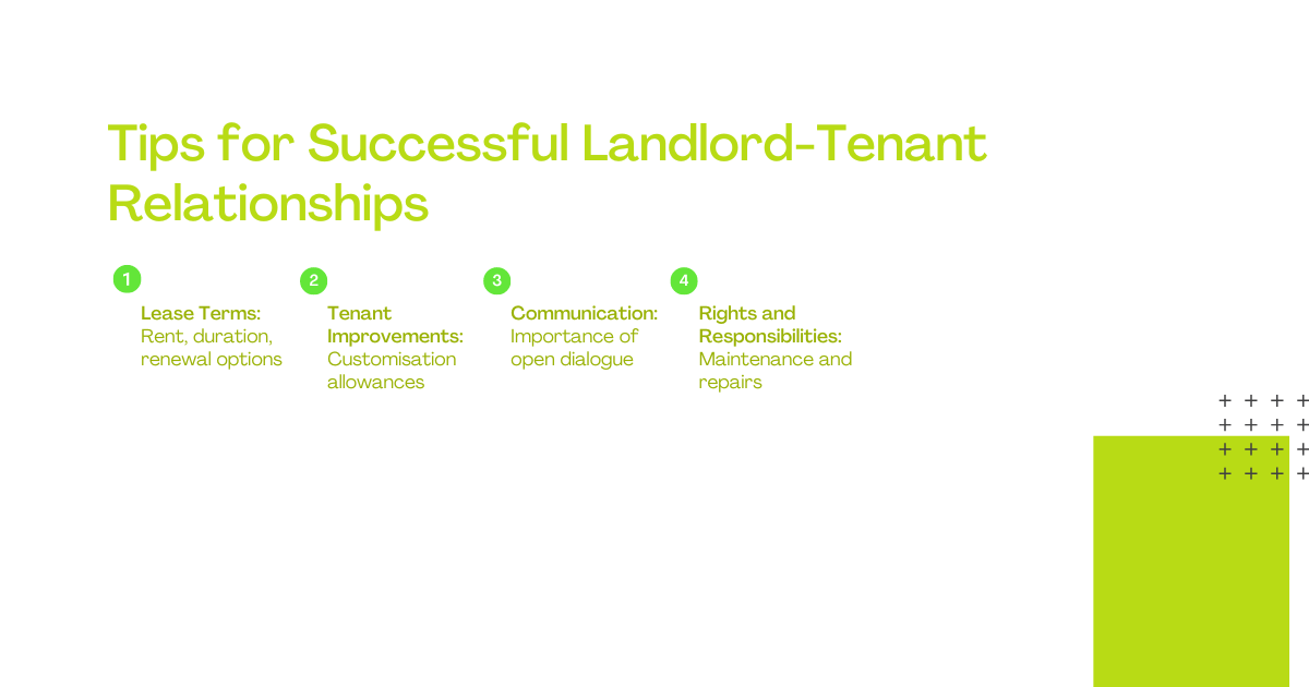 When leasing commercial property, the relationship between the landlord and tenant is paramount to a smooth and successful tenancy. Consider the following: