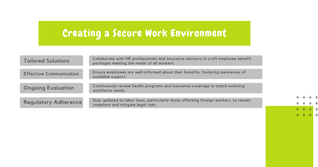 Tailored Solutions: Work with human resources professionals and insurance advisors to design comprehensive employee benefit packages that cater to the needs of both domestic and foreign workers.